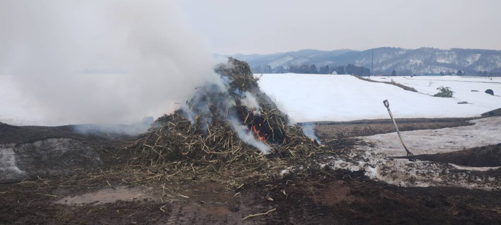 消防に許可を取りガラ燃やし作業を。