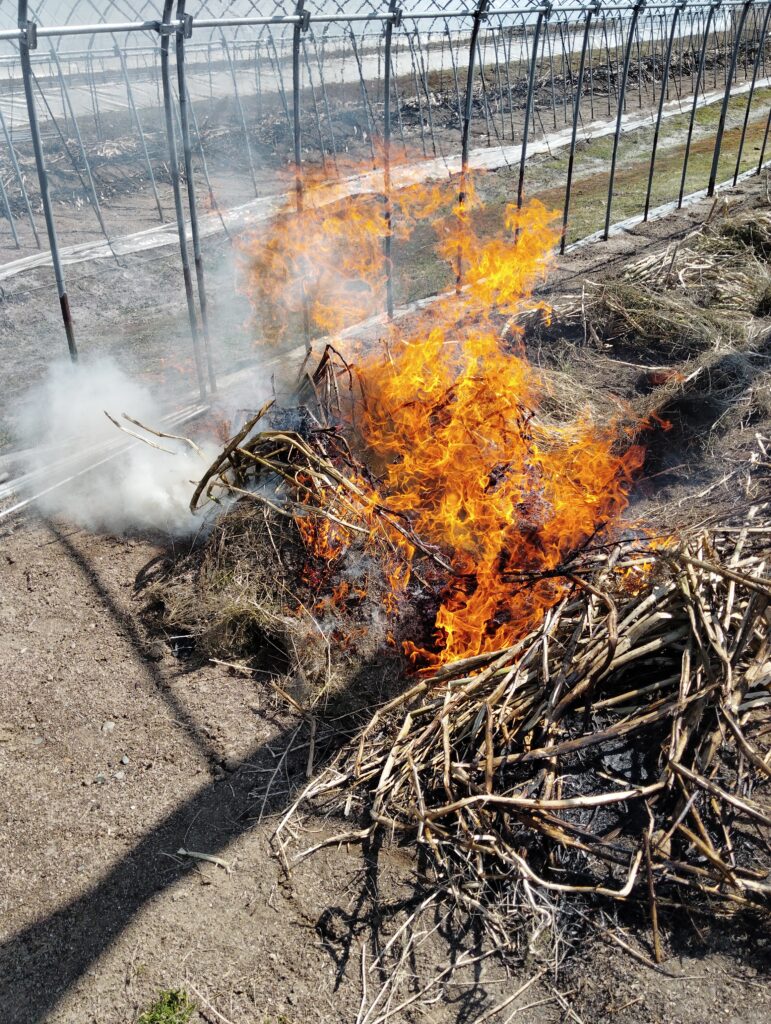 露地アスパラの燃やし作業も昨日終わらせガラ片付け…